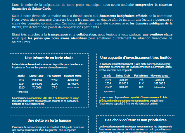Dans le cadre de la préparation de notre projet municipal, nous avons souhaité comprendre la situation financière de Sainte-Croix.